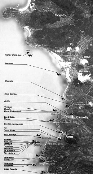 City of Agra to O Canesudo, where it breaks in two. 29 sailors